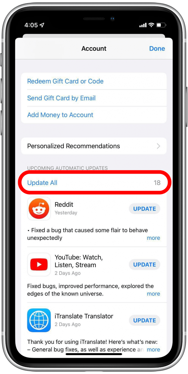 Update using your computer. On the list of apps tap UPDATE to the right of the. You can also select Update next to.